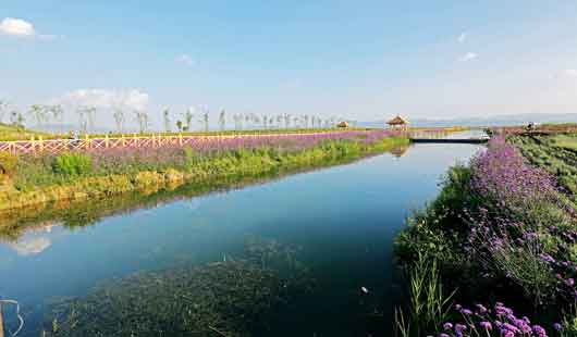 威宁草海平均水深仅约2米,水质清澈无污染,由于大量水生植物无一空瑕密布“海底”,从而形成了极为壮观的“水下草原”,机动船无法行进。可当你乘渔家小船泛舟海面时,伸手可及“草”,抬头可见天,水天一色,幻如梦境。但最美的还是她出脱尘世的静。身在其中,你会忘掉自身的存在,而完全融入到大自然当中。