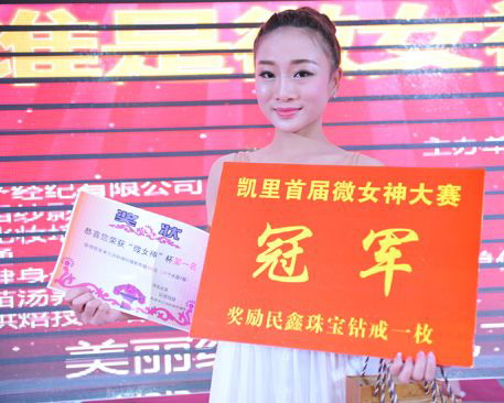 凯里首届微信选美大赛是由黔东南州创想传媒有限公司和黔东南电视台《文化广角》栏目联合主办,大赛经过为期3个多月角逐,23位佳丽经过层层选拔,从300多名参赛选手中脱颖而出,进入决赛。最终,来自黔东南州民族高级中学的20岁美女老师李璇摘夺桂冠。图片提供者雷安宁。