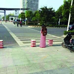 隔离墩成精了的图片在微博上热传。图片上,一名身穿红白条纹长裙的女生站在路边,她的背影和脚边的三个隔离墩“融为一体”,远看像是长条的“隔离墩”。昨天下午,现代快报记者联系上了这个和隔离墩“撞衫”的女生,她是南京财经大学一名大四学生。