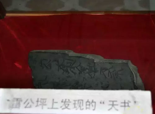 贵州省雷山县雷公山东北方向雷公坪,有块石碑叫“天书碑”,碑上刻有疑是苗文的神秘文字。这些文字雕刻得古朴遒劲,用笔操刀很有汉魏的风骨,与汉字有着亲缘关系,又和日文非常相近,但究竟是什么内容、写于什么时候,以及是什么人的,却无从考证。